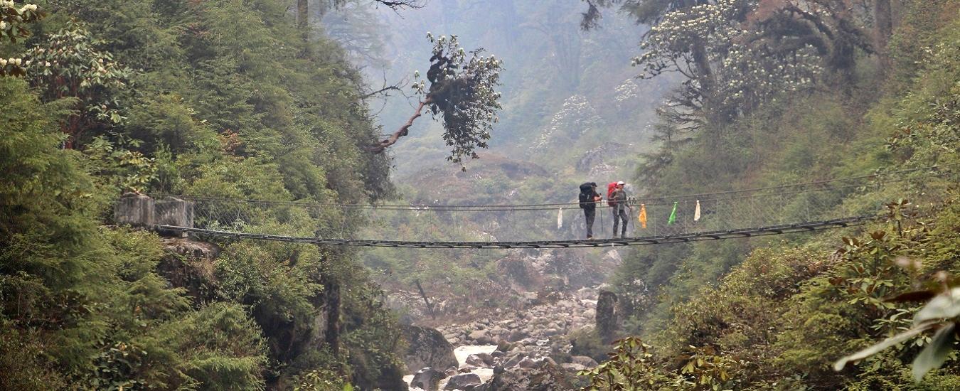 We descend to the village of Pokora through the Phawa Khola, crossing a suspension bridge. Before beginning the trek, climb up to Kunjuri. We get our first views of Kanchenjunga and we stay further ahead in Khesewa.